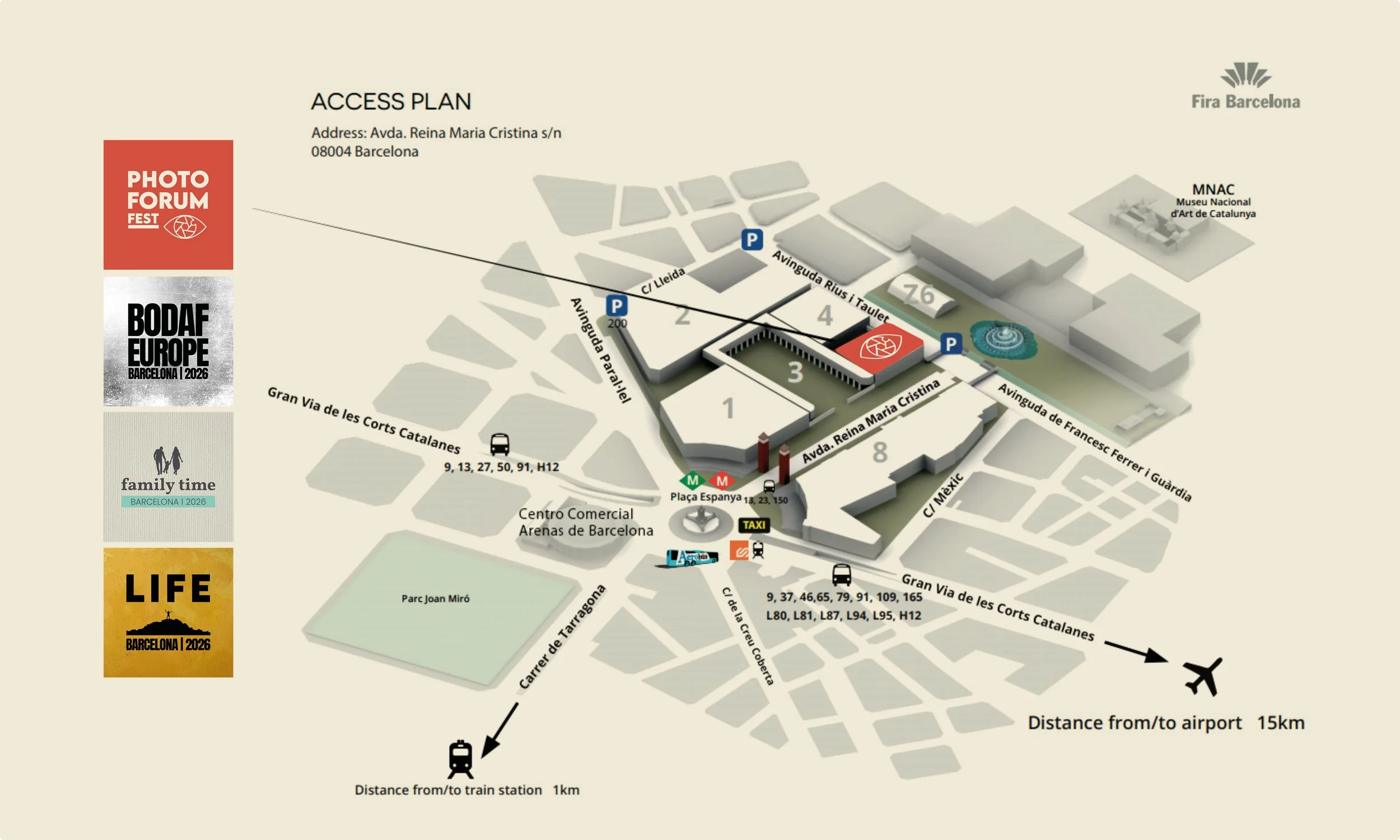 – Autobús: línea 46 de TMB (parada “Pl. Espanya – FGC”)